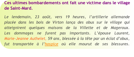 Au même moment, Octave Foncin est touché d’un éclat d’obus sur le seuil de sa demeure.